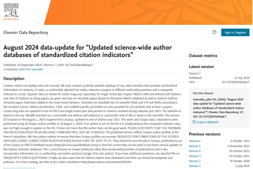 全球前2%顶尖科学家榜单是基于Scopus数据库的引用数据系统分析,使用总引用量(区分自引和他引,提供自引数据)、Hirsch H-index、共同作者修正的Schreiber Hm-index、单独作者、单独或者第一作者等6个关键因素评分,从全球近700万名科学家中遴选出世界排名前2%的科学家,涵盖了22个领域和174个子领域,为科学家长期科研表现提供了一个衡量指标,能够更客观、更真实地反映科学家的影响力。其中生涯科学影响力榜单(Career)统计科学家职业生涯期间的综合表现,而年度科学影响力榜单(Singleyr)则更聚焦上一年度的学术影响力。入选榜单,意味着该学者在其研究领域具有较高的世界影响力。(详见链接:https://elsevier.digitalcommonsdata.com/datasets/btchxktzyw/7)