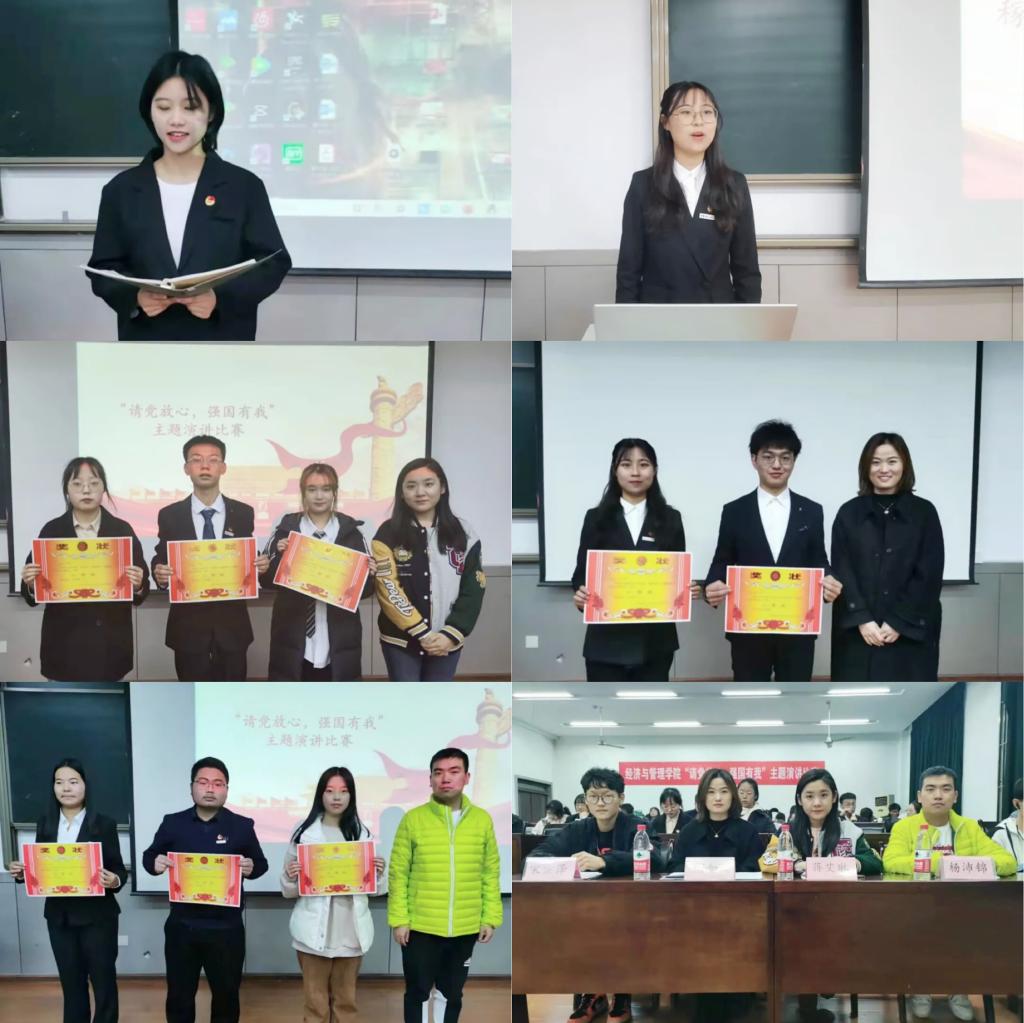 11月23日晚,SUNBET申博于教10-107举办“请党放心,强国有我”主题演讲比赛。院团委书记闫如玉、辅导员蒋艾琳、辅导员杨沛锦、大艺团语言部部长宋宗泽出席本次活动并担任评委,各年级员工代表参加。