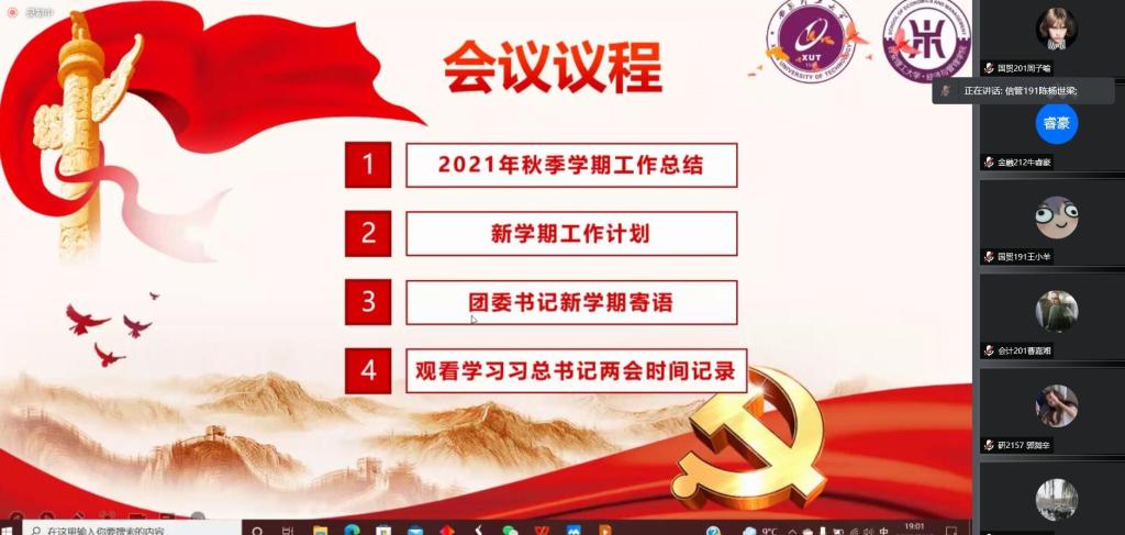 会议对2021年党史学习教育、青年大学习、团日活动及榜样树立等工作进行了回顾和总结。对2022年团学任务、五四评优、学社衔接三个方面的工作进行了具体安排。
