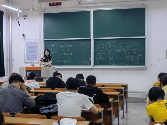 开班仪式上,任程宇首先从“高数小课堂”的创办理念、课程安排和教材选取三个方面向同学们进行了说明,他希望同学们严守课堂纪律,尊重课堂教学,努力通过本次高数小课堂课程查漏补缺,增进知识,为本学期的高数课程交上一份满意的答卷。随后,刘雪茹小老师开始了《线性代数》第一、二章的讲解,她思路清晰,讲解到位,带领同学们直击重难点,并辅以例题,帮助同学们加强对知识的理解和吸收。紧接着,马靖小老师通过基础公示讲解和解题思路分析对第三、四章后半部分的内容进行说明,并用循循善诱的方法引导同学们完成思考,独立解题。两位小老师的讲解贯穿重要知识点,紧扣基础,在讲解过程中,同学们均认真听讲,积极讨论,课堂气氛活跃有序。