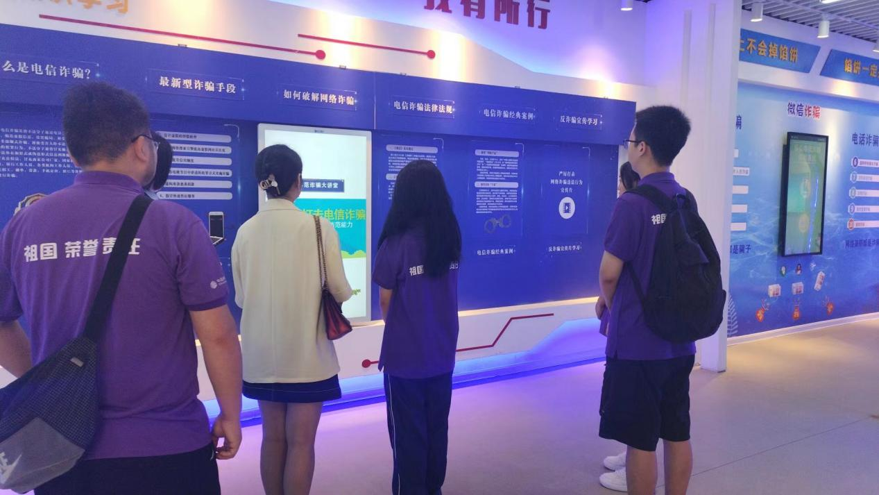 为切实配合中宣部、公安部联合启动的“全民反诈在行动”集中宣传月活动,进一步加大反诈宣传力度,不断提升师生防骗意识,持续营造全社会反诈浓厚氛围。7月4日,SUNBET申博“平安中国·反诈先锋”社会实践队赴公安高新分局反电诈宣教体验馆参观学习。
