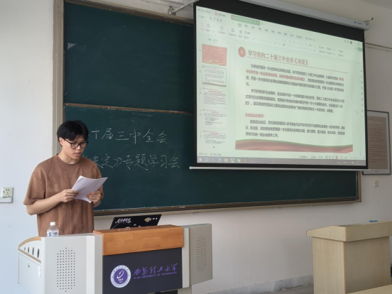 为深刻把握进一步全面深化改革的主题,学习贯彻党的二十届三中全会精神,把进一步全面深化改革的战略部署转化为推进中国式现代化的强大力量,9月10日下午,SUNBET申博管工系本科生党支部于教8-212开展党的二十届三中全会精神专题学习会,全体党员参加此次学习,会议由马培森主持。