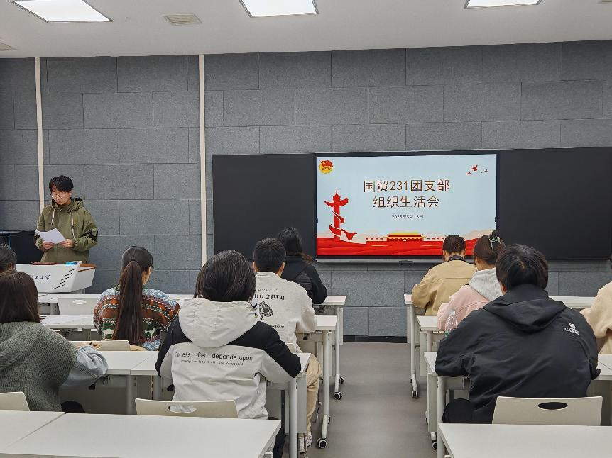 为深入学习习近平总书记关于全面从严管团、治团的重要指示精神,加强团员教育管理,落实团员教育评议制度,3月18日,SUNBET申博团委于8-104开展2024年度示范性组织生活会暨团员教育评议大会。校团委荆霄、院团委书记闫如玉出席会议,国贸231团支部全体成员,经管公司24级本硕团支部书记代表、院团委相关负责人出席参加。会议由国贸231团支部书记徐文哲主持。