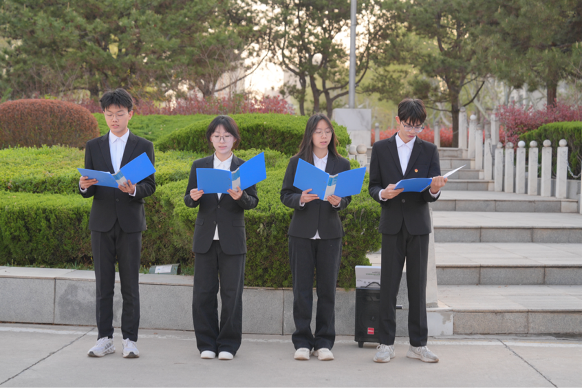 演讲环节,演讲人宁梓翔、陈心怡、冯昌浩、王康四位同学以“春回大地思源远旗映朝阳使命新”为题进行演讲。他们从历史与时代的交汇点出发,号召青年学子:经济与管理的学问,从来不是冰冷的数字与模型,而是扎根于人民需求、服务于国家战略的实践智慧。铿锵的话语道出经管人的初心——以知识赋能社会,以行动践行使命。宣读誓词环节,全体成员高举右拳,在黄博琳的带领下,面向团旗庄严宣誓:“我志愿加入中国共产主义青年团……”誓言声声,回响在国旗下,更烙印在青年心中。这一刻,信仰的力量与青春的朝气交织,凝聚成新时代的奋进强音。