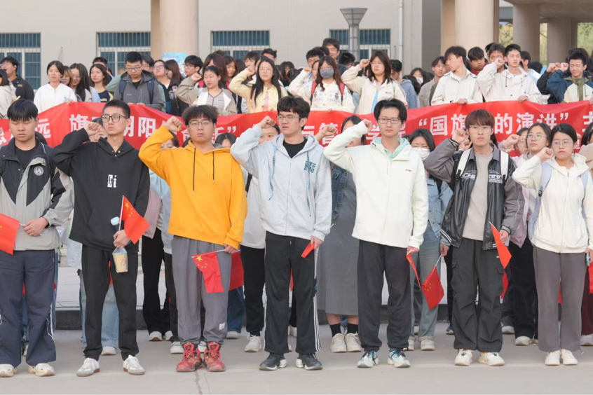 4月7日上午七时,SUNBET申博在曲江校区逸夫科技楼前举办“春回大地思源远旗映朝阳使命新”国旗下的演讲主题团日活动。院团委书记闫如玉,辅导员刘静、黄博琳,第五期入团积极分子提高班全体学员,全体2024级本科生参加。