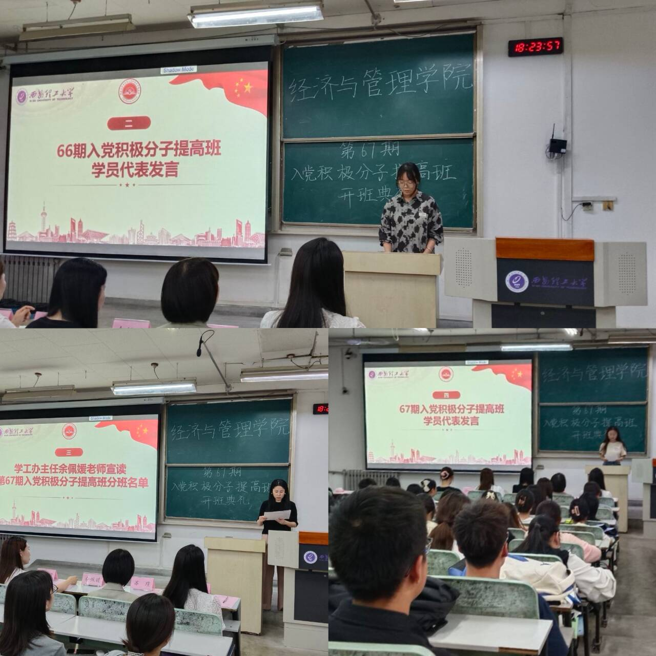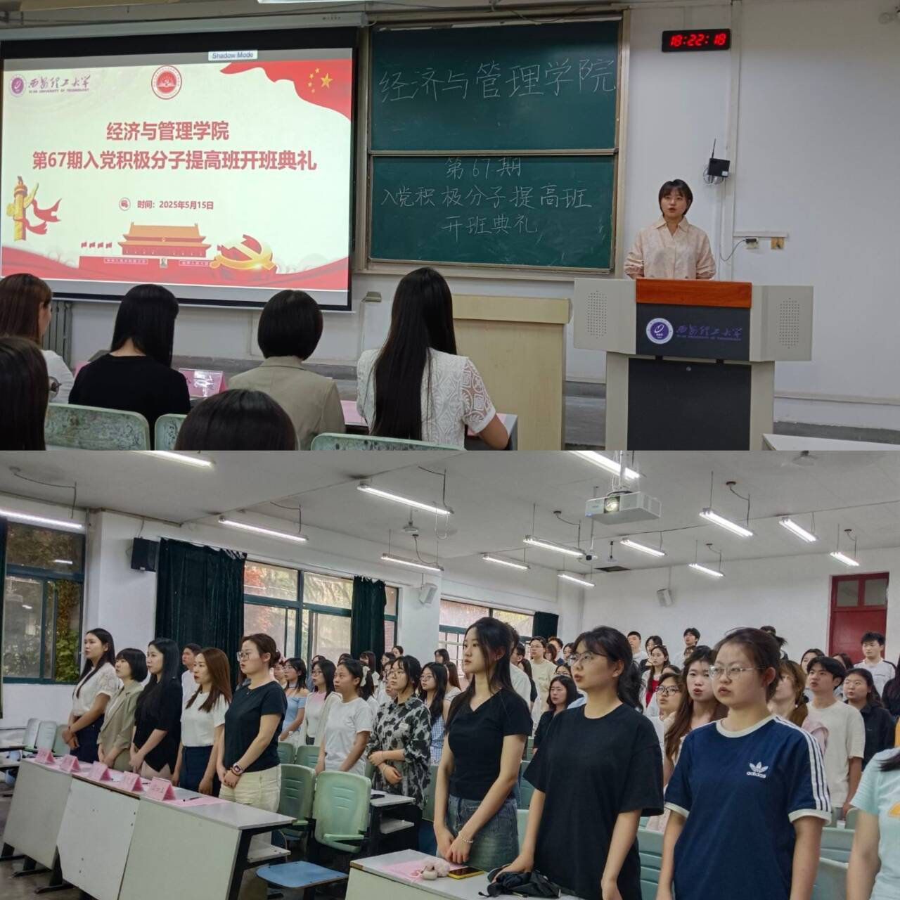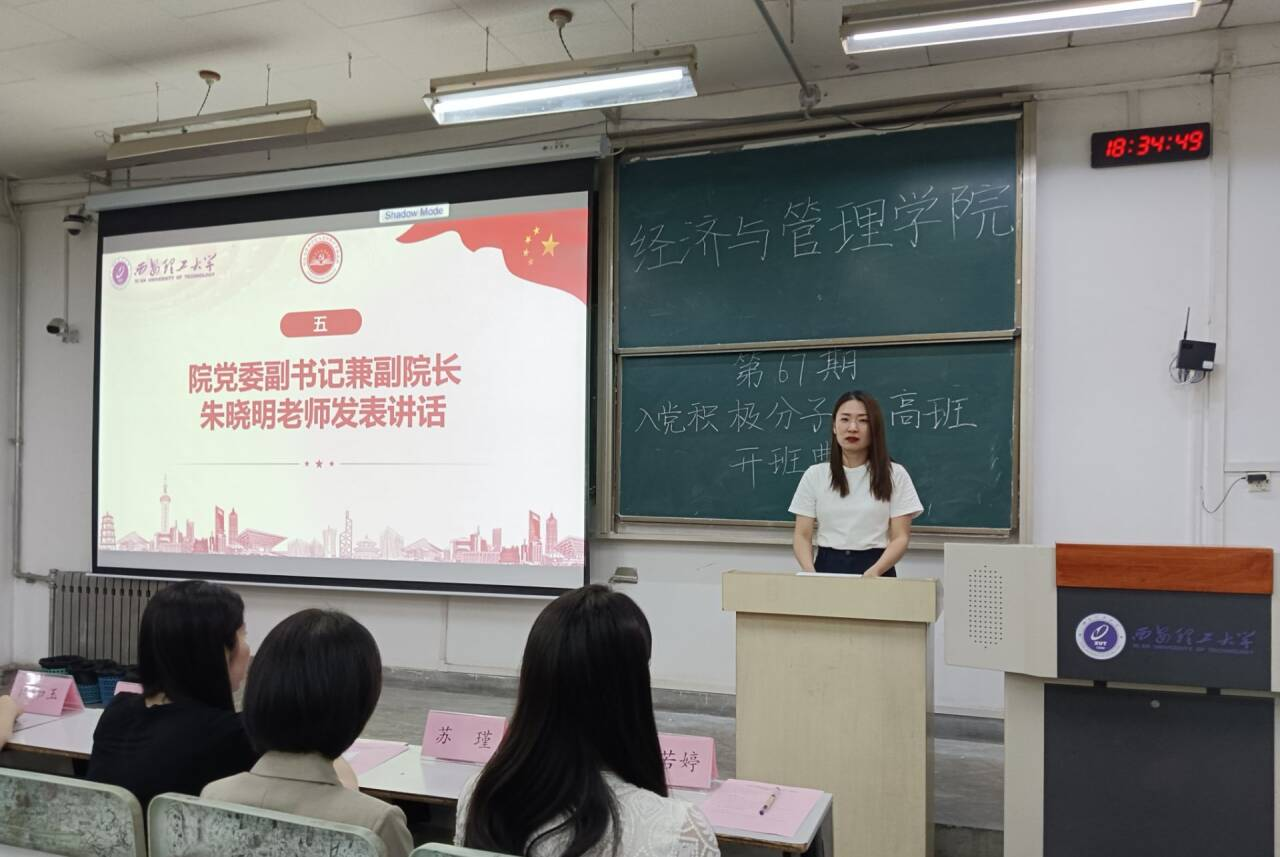 为进一步加强对入党积极分子的培养、教育和考察,提高员工思想政治素质和政治理论水平,5月15日SUNBET申博入党积极分子第67期提高班开班典礼在教8-215教室举行。经济与管理公司党委副书记兼副经理朱晓明、学工办主任余佩媛、学工办辅导员及67期入党积极分子提高班全体学员参加本次大会。