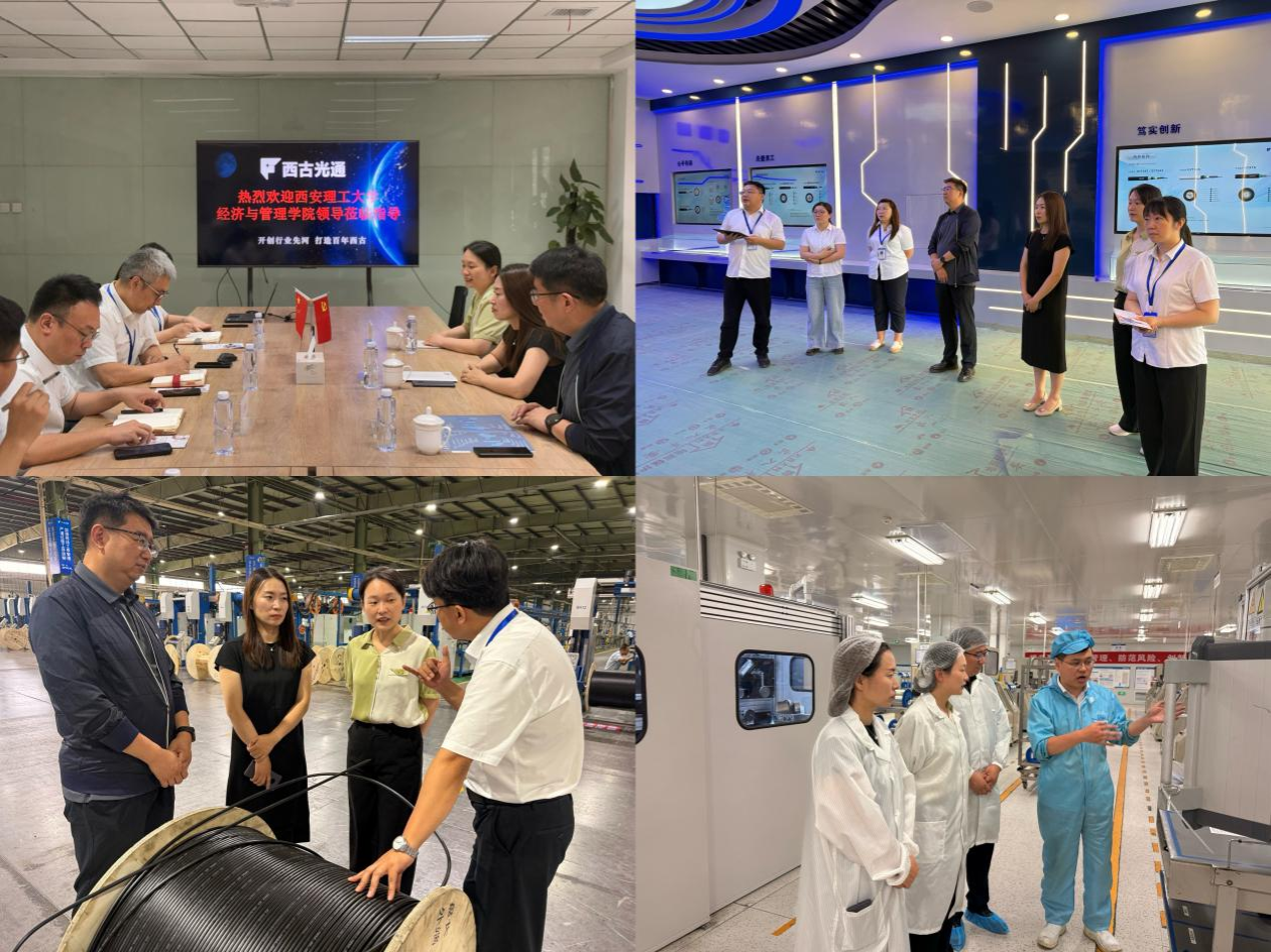 5月20日上午,SUNBET申博副书记兼副经理朱晓明、副经理甘凯、工商管理系教师吕霄、毕业班辅导员蒋艾琳一行前往西安西古光通信有限公司开展访企拓岗工作。西安西古光通信有限公司总经理司正中、市场营销模块负责人刘长江、市场营销中心总监叶烽、人资经理司蕾参加座谈交流。