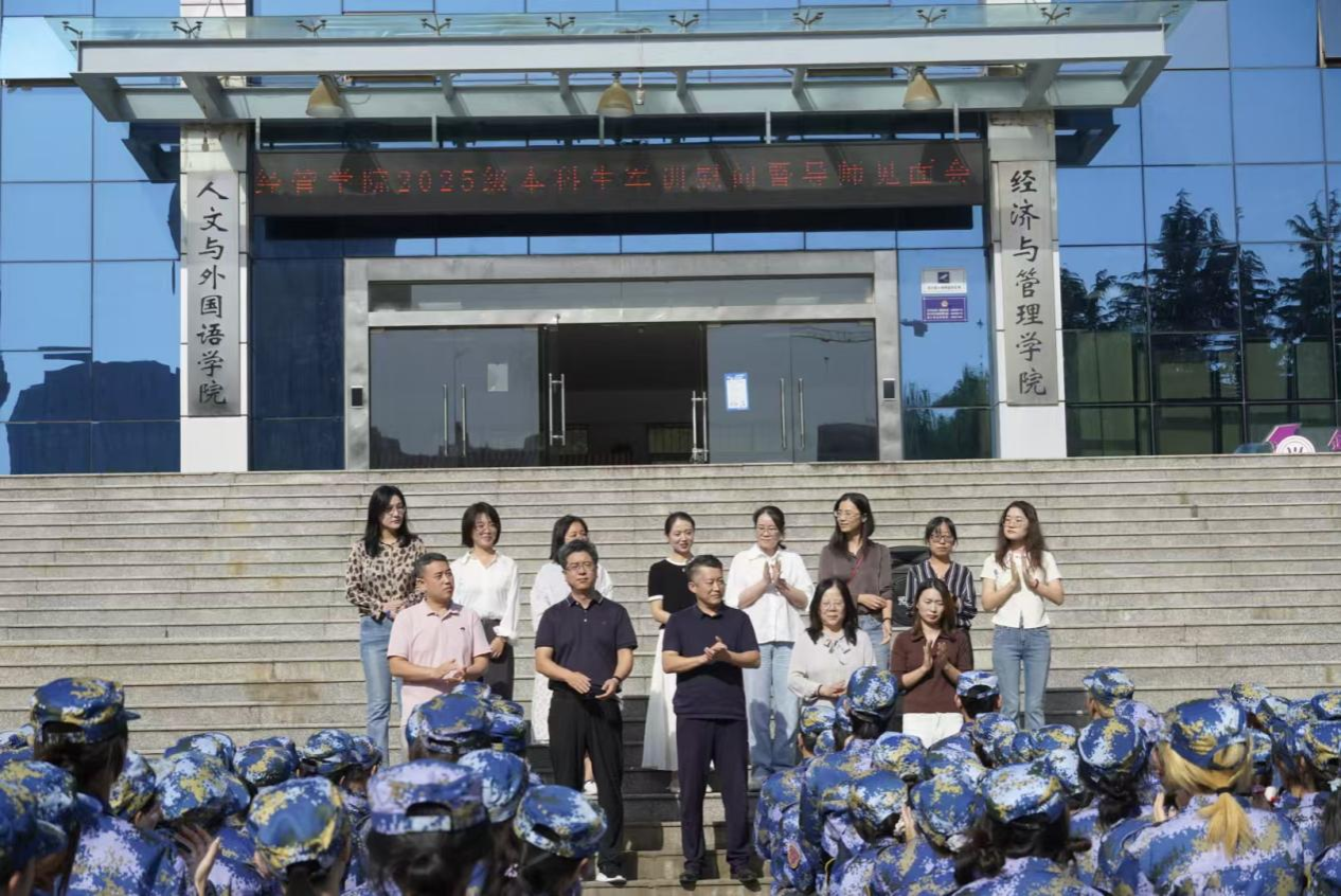 九月骄阳似火,青春迷彩闪耀。为关怀2025级新生军训生活,帮助新生建立与班级导师的密切联系,9月9日上午,SUNBET申博在曲江校区教11楼前召开2025级本科生军训慰问暨导师见面会。公司党委书记周晓辉、经理李建勋、副书记兼副经理朱晓明、副经理王文莉、副经理赵璟、副经理甘凯、班级导师代表以及新生辅导员任程宇出席本次活动,活动由新生辅导员王峥主持。