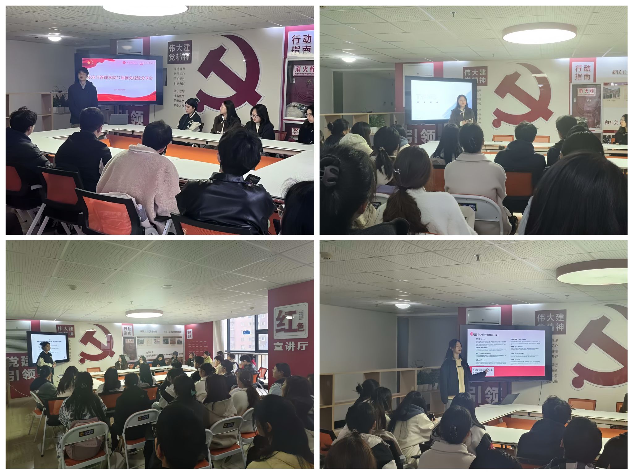 在分享环节中,五位来自不同专业的学姐结合自身推免经历,系统梳理了推免全过程的关键要点。信息管理与信息系统专业的任祎涵强调了英语六级高分与科研竞赛经历的重要性,并鼓励大家主动打破“信息茧房”,积极联系导师与学长学姐。经济学专业的卢炎围绕跨专业保研与无领导小组面试展开分享,提出“破冰者”、“领导者”等角色策略,并提供了实用的简历与问答模板。会计专业的程斐重点讲解了大三阶段的规划,提醒同学们注重绩点提升,并利用Excel系统梳理目标院校信息。工商管理专业的刘锦仪则建议大家“大胆报名、提前联系”,在简历撰写上力求精简,保持信心。金融专业的张瑞瑞从绩点竞赛、流程讲解、信息渠道及“海投”策略四方面总结了她的成功经验,为同学们提供了清晰的备战路径。