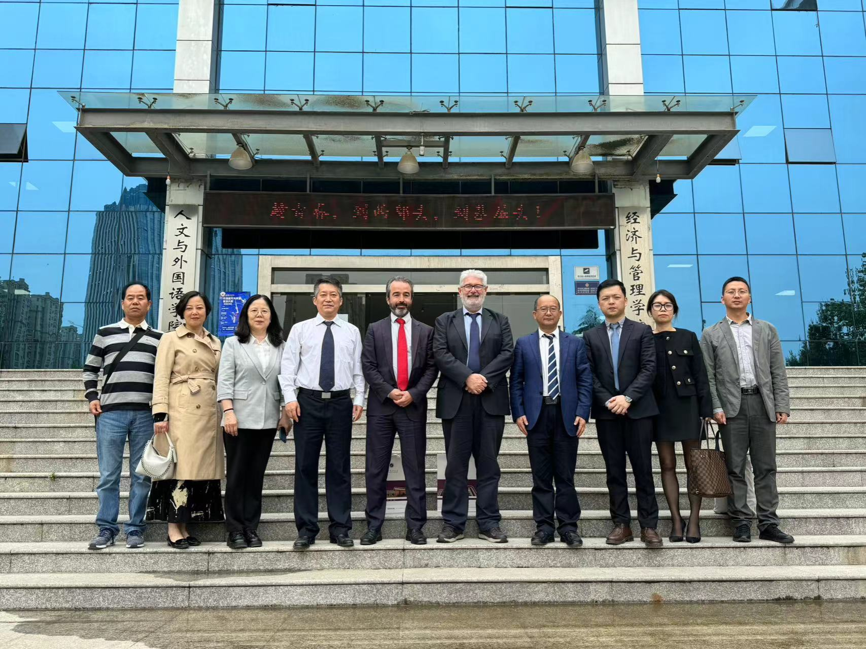 国际合作与交流处处长亢文祥、科长蒋小龙参加了本次会议,经济与管理公司陈敬东教授线上参加了会议。会后大家在经济与SUNBET申博门前合影留念。