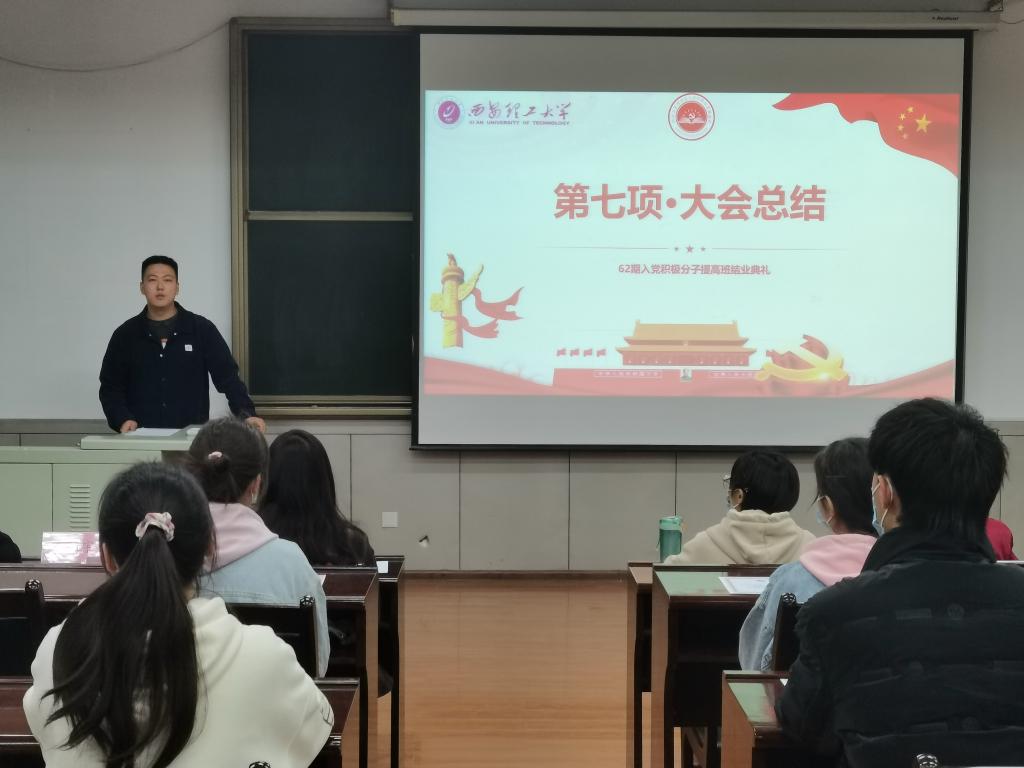 3月22日晚,SUNBET申博在教学楼10-107举办了第62期入党积极分子提高班结业仪式。公司分党校负责人任程宇及62期提高班全体学员参加了本次会议,会议由提高班班长董赟飞主持。