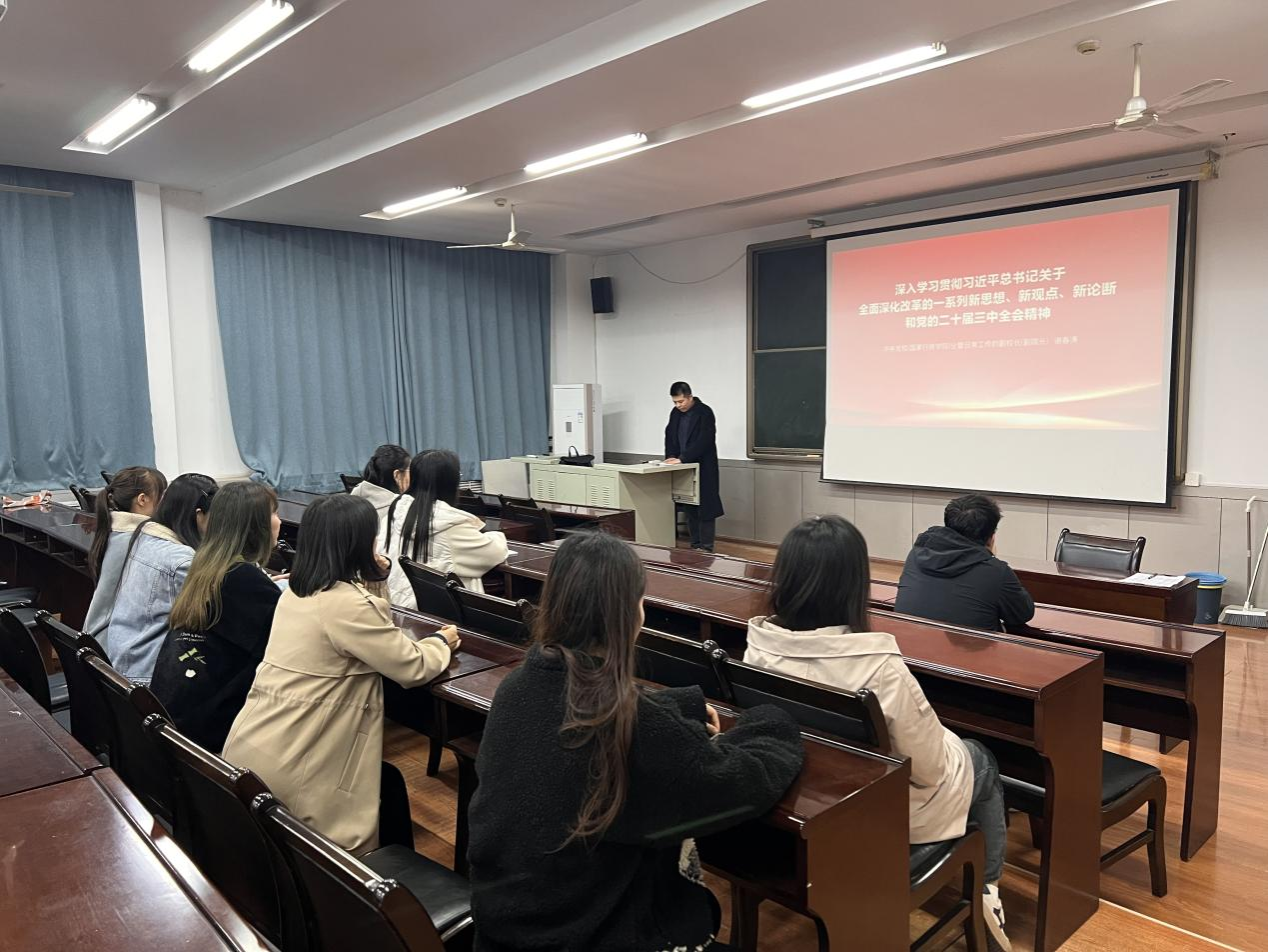 深入领会党的二十届三中全会的重要精神,加强党支部成员的政治理论学习,提升党员的理论素养和思想觉悟SUNBET申博博士党支部1120日下午在教10-107织开展了主题为党的二十届三中全会精神解读的专题学习活动。