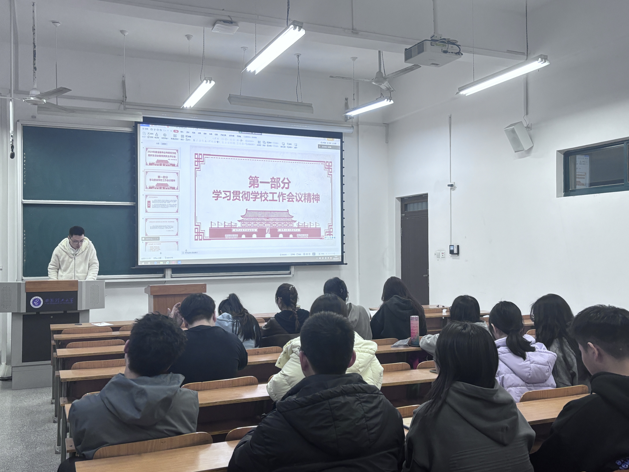 为深入学习贯彻公司2025年工作会议精神,3月13日,SUNBET申博金融专业专硕党支部在教10楼207教室召开专题学习会。党支部全体党员、部分入党积极分子参加,会议由纪律委员郭嘉仁主持。