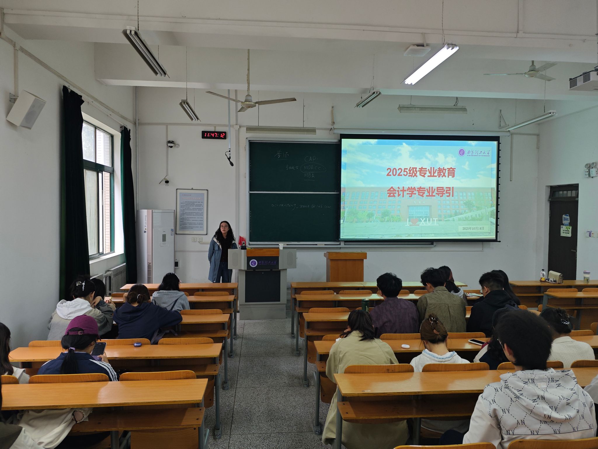 在讲座尾声,惠祥老师系统介绍了会计专业的团队队伍,包括各位教师的授课内容与研究领域,在增进新生对专业团队了解的同时,鼓励大家就学业发展、职业规划及科研实践等话题,主动与老师交流探讨。在后续的互动环节中,同学们围绕大学学习与职业发展踊跃提问,与老师们进行了深入探讨,现场交流气氛热烈。