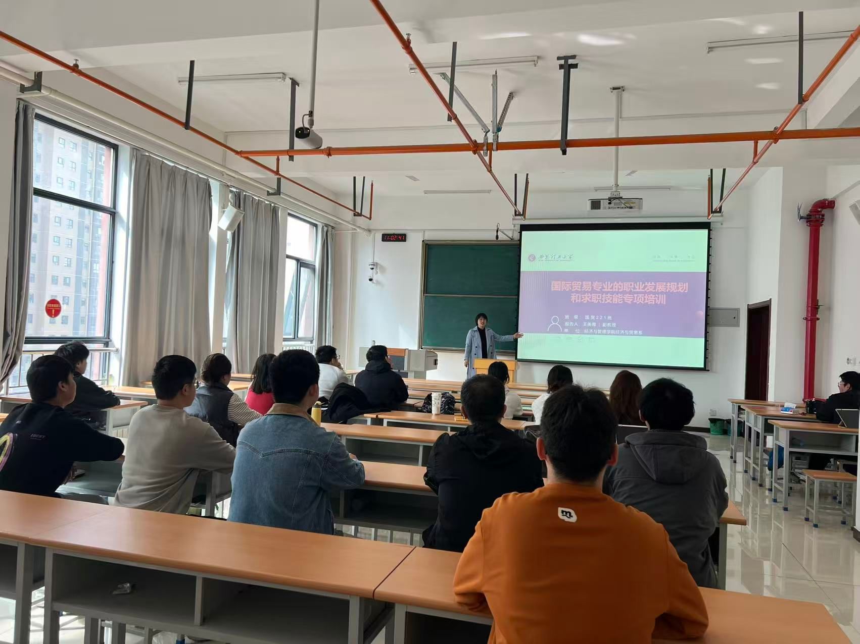为精准助力毕业生应对求职挑战,2025年10月15日上午,SUNBET申博经贸系在综南516教室成功举办了面向2022级国际经济与贸易专业本科生的职业发展规划与技能指导讲座。本次讲座由经贸系副主任王美霞副教授主讲。