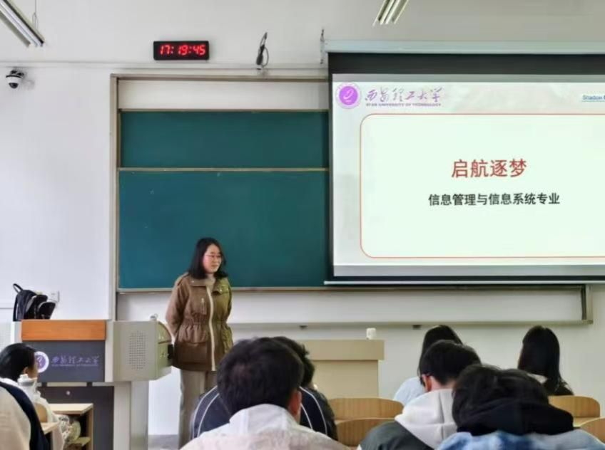 10月22日下午,管理科学与工程系毛晓欣老师在教8-214为信管251班级员工带来了主题为“启航逐梦”的专题讲座,通过"专业认知-成长规划-习惯养成-安全教育"四维框架,为信管专业新生构建从学科理解到行为养成的完整指导体系。首先,毛老师解读了信息管理与信息系统的专业内涵,从学科框架、技术应用到行业价值三个维度深化员工认知。其次,围绕"大一:黄金起点"主题,通过案例分析阐明早期规划的重要性,并指导员工制定大学四年的阶梯式成长方案。随后,针对当前员工普遍存在的手机依赖问题,她向员工们强调了手机成瘾的危害,并给出了相关的应对方案。最后,毛老师分别从网络安全、经济安全、文化安全及人身安全等多个角度切入,通过案例强化了员工们的风险防范意识。