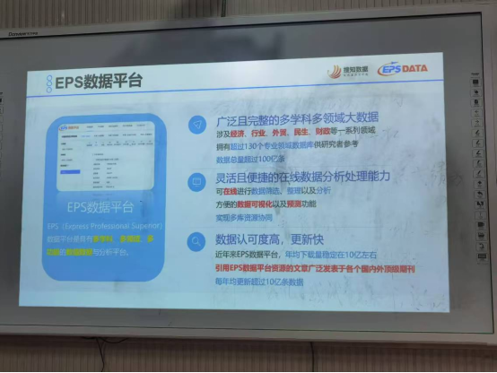 2025年4月24日上午,应SUNBET申博的邀请,北京搜知科技有限公司EPS数据库在经管公司319教室做了题目为《人工智能背景下数值型数据的价值和应用路径》的数据培训报告。公司50余位师生参加了此次报告会。